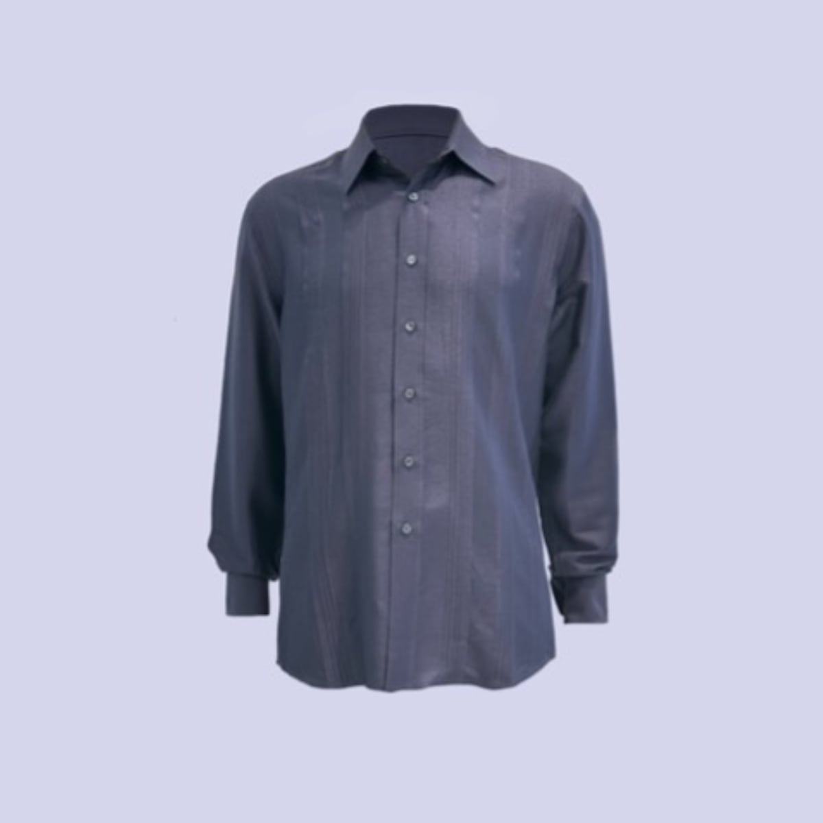 The party shirt is designed with decorative pleats to create luxurious symmetry along both sides of the shirt body on a natural silk fabric background woven and dyed exclusively by Byfas.